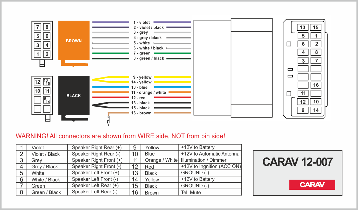 ISO (hembra) <---> CARAV <---> conector OEM (macho)