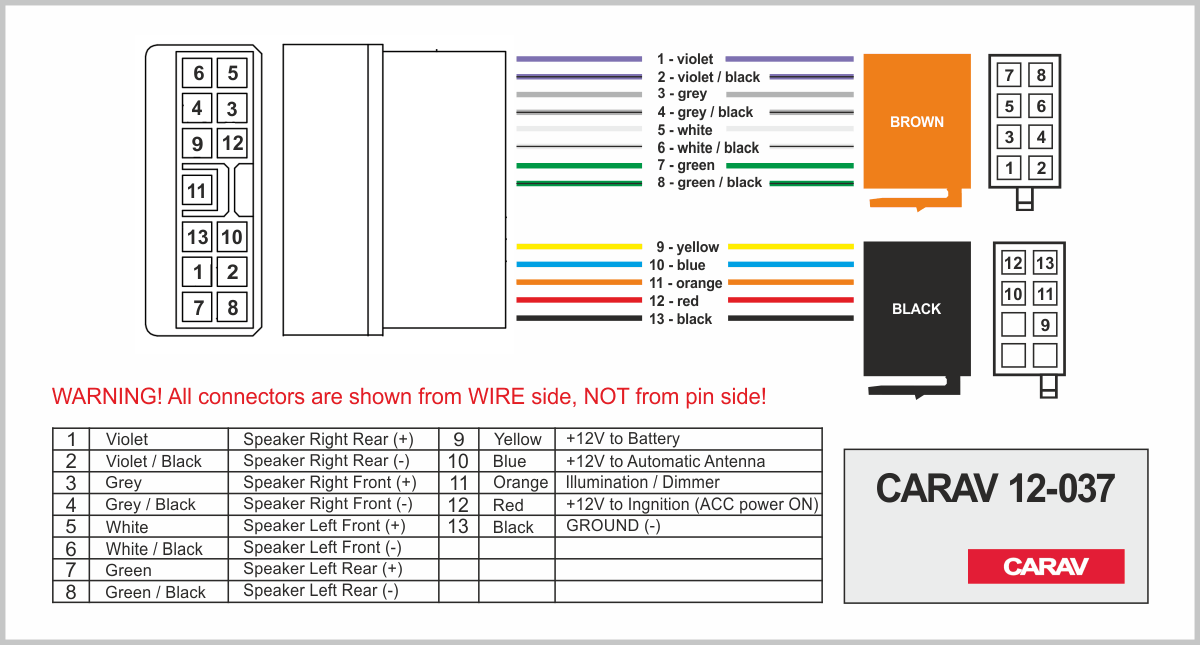 ISO (hembra) <---> CARAV <---> conector OEM (macho)