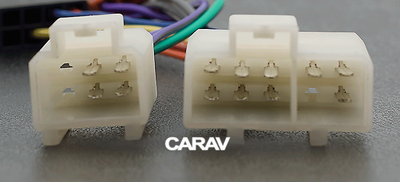 ISO (hembra) <---> CARAV <---> conector OEM (macho)