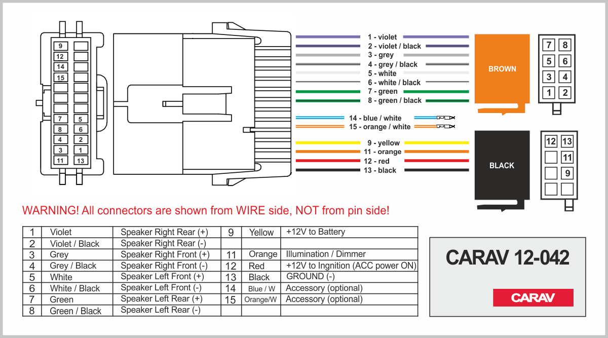 ISO (hembra) <---> CARAV <---> conector OEM (macho)
