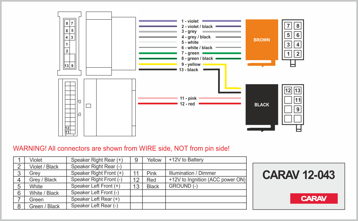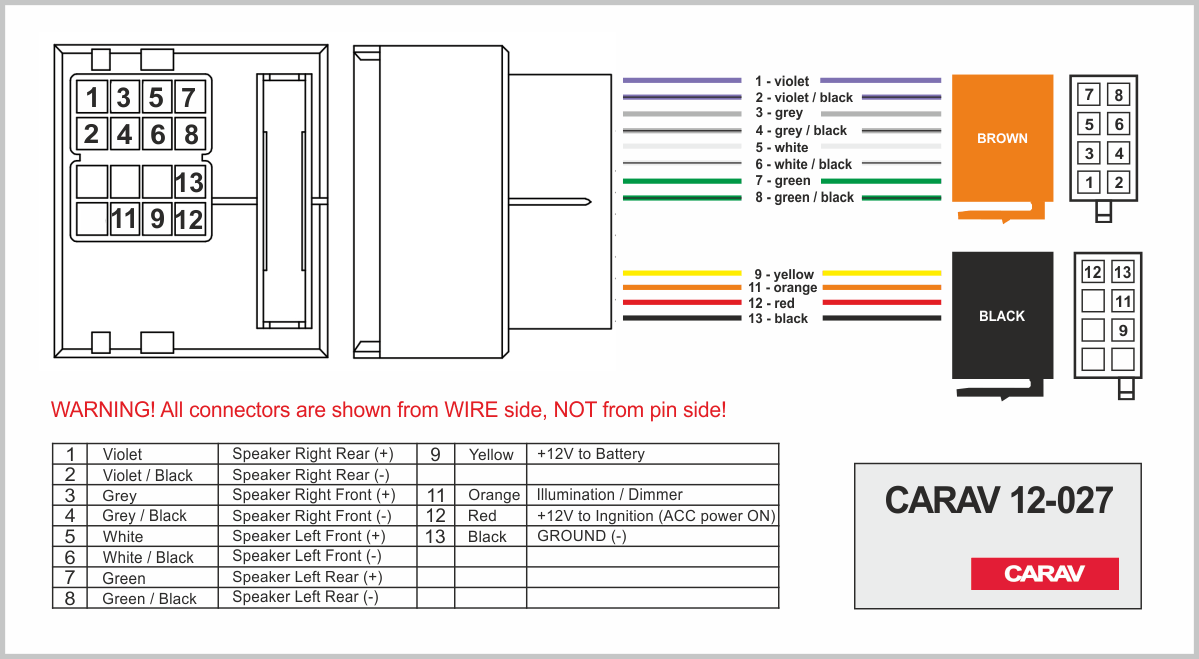 ISO (hembra) <---> CARAV <---> conector OEM (macho)