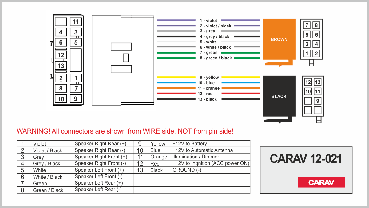 ISO (hembra) <---> CARAV <---> conector OEM (macho)